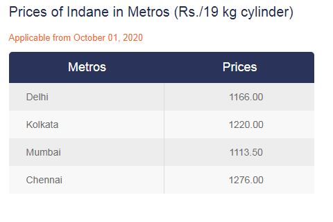 अक्टूबर में एलपीजी रसोई गैस सिलेंडर की कीमतों में बदलाव हुआ है। ये बदलाव 19 किलोग्राम वाले सिलेंडर की कीमतों में हुआ है। आईओसीएल से मिली जानकारी के अनुसार, दिल्ली में 19 किलो वाला रसोई गैस सिलेंडर 32 रुपये तक महंगा होकर 1166 रुपये हो गया है। हालांकि 14.2 किलोग्राम वाले एलपीजी सिलेंडर के दाम में कोई बढ़ोत्तरी नहीं हुई है। राजधानी दिल्ली में 14.2 किलोग्राम वाले एलपीजी सिलेंडर का दाम पिछले महीने की तरह 594 रुपये पर स्थिर है। अन्य शहरों में भी घरेलू रसोई गैस सिलेंडर के दाम भी स्थिर है।